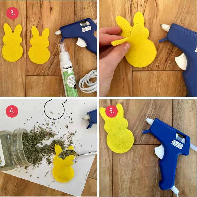 - ...then it’s time to start gluing! Glue the bottom half edges of your bunny only.
