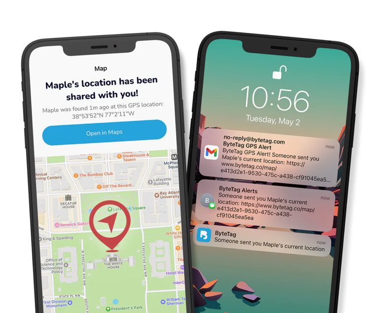 Receive your pet's GPS location when someone scans your ByteTag!